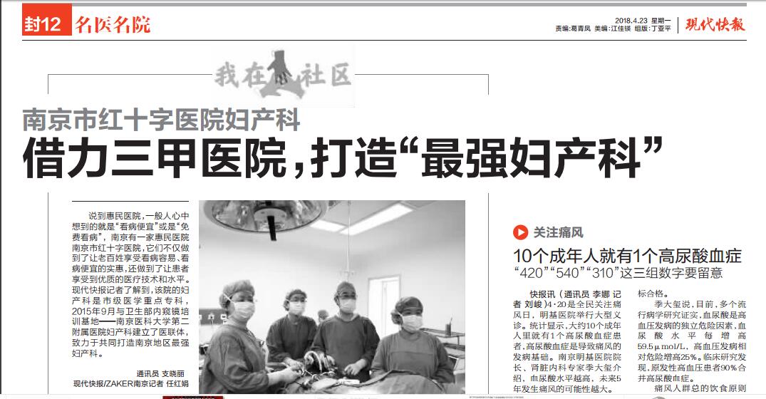 南京市红十字医院妇产科自2009年以来一直被评为“南京市医学重点专科”,自2015年9月起,成立了南京医科大学第二附属医院·南京市红十字医院妇产科医联体。