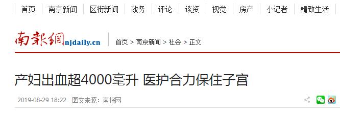 南报网讯(记者 顾小萍 通讯员 支晓丽)高龄产妇因子宫收缩乏力,产后出血超过了4000毫升。幸运的是,南京红十字医院产科医护团队凭借丰富的经验沉着应战,不仅将她的命保住了,子宫也保住了。